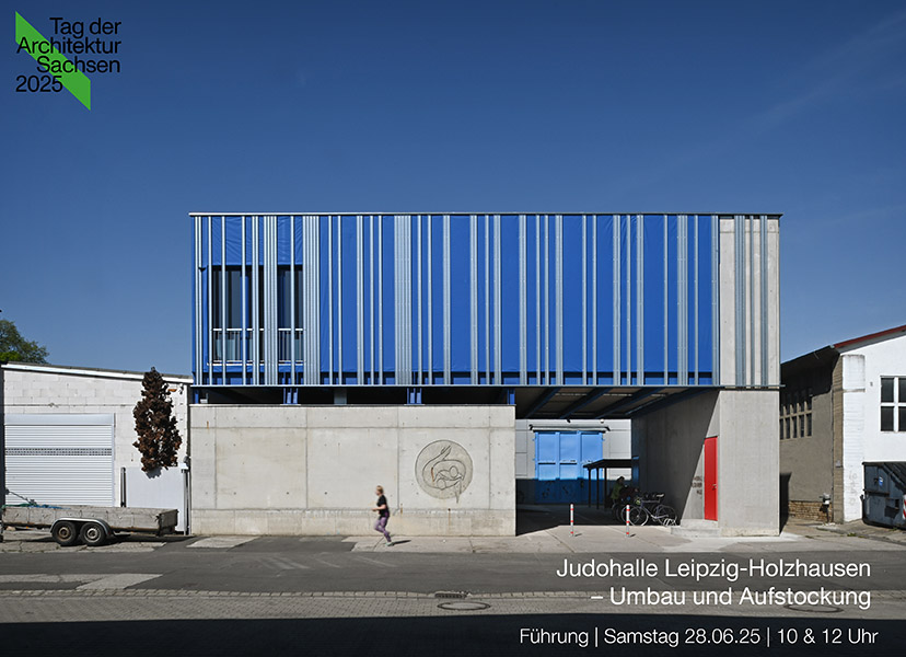 Zum Tag der Architektur am 28.06.25 kann die Judohalle in Leipzig-Holzhausen besichtigt werden. Umgebaut, erweitert und seit Neustem aufgestockt!