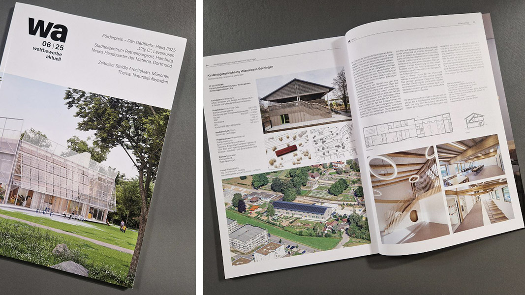 Unsere Kita Wiesennest in Gechingen wurde in der aktuellen Ausgabe von wettbewerbe aktuell unter der Rubrik „weiterverfolgt“ veröffentlicht.