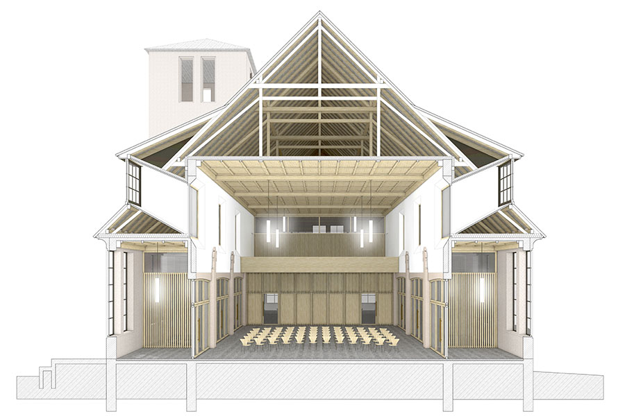 Der vom Architekten Hannes Mayer 1935 fertiggestellte, denkmalgeschützte Kirchenbau wird mit behutsamen und auf das Nötigste beschränkten Eingriffen zu einem flexibel nutzbaren und einladend gestalteten Raum umgenutzt. Alltägliche Beratungen finden genau so wie kleine Konzerte, Besprechungen, Gottesdienste oder die Vesperkirche ihren Platz.